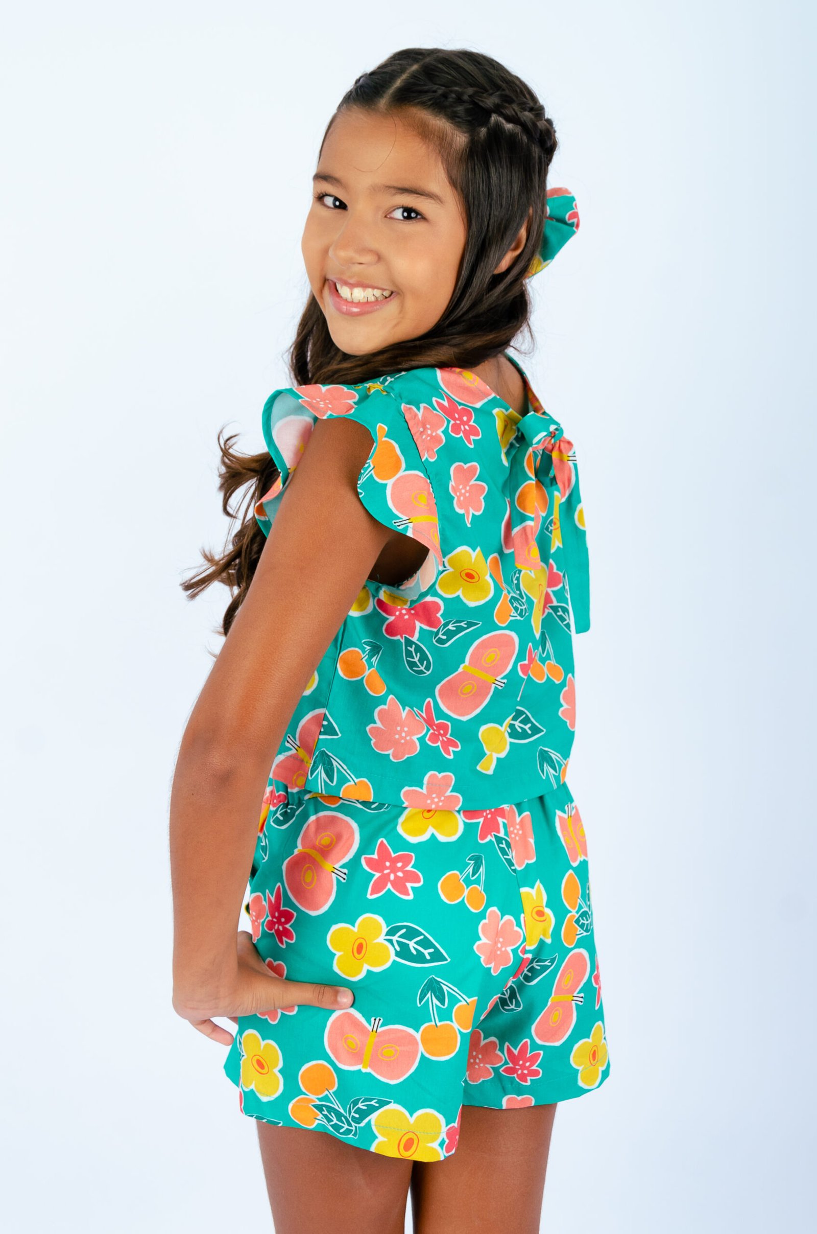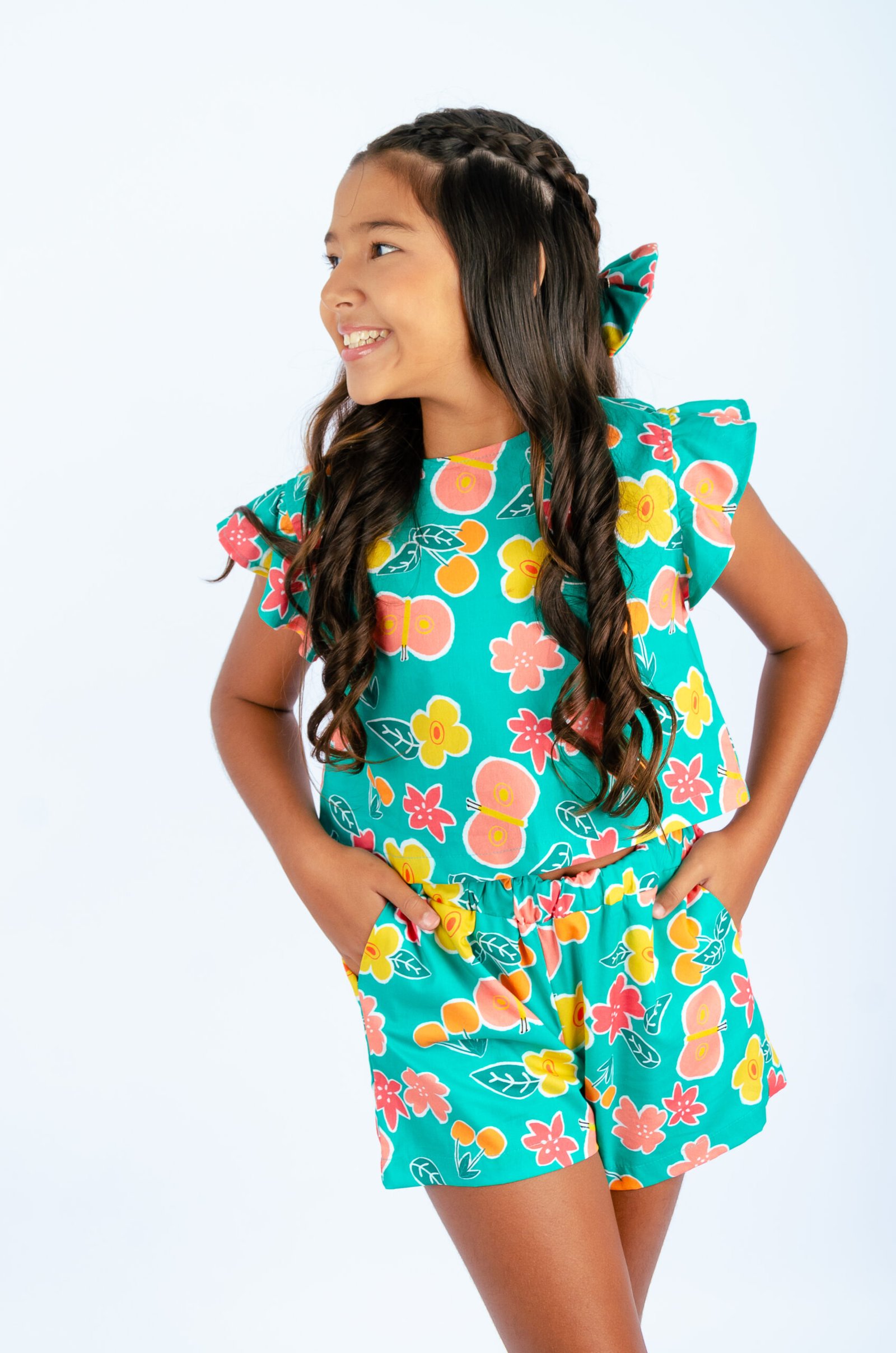 . Short com bolso lateral e elástico para ajuste na cintura;