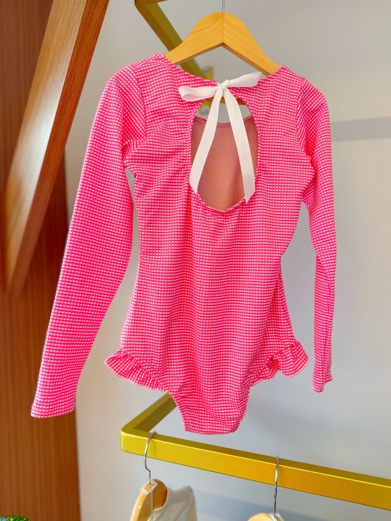 . Decote atras com fita de algodão para o ajuste em laço.